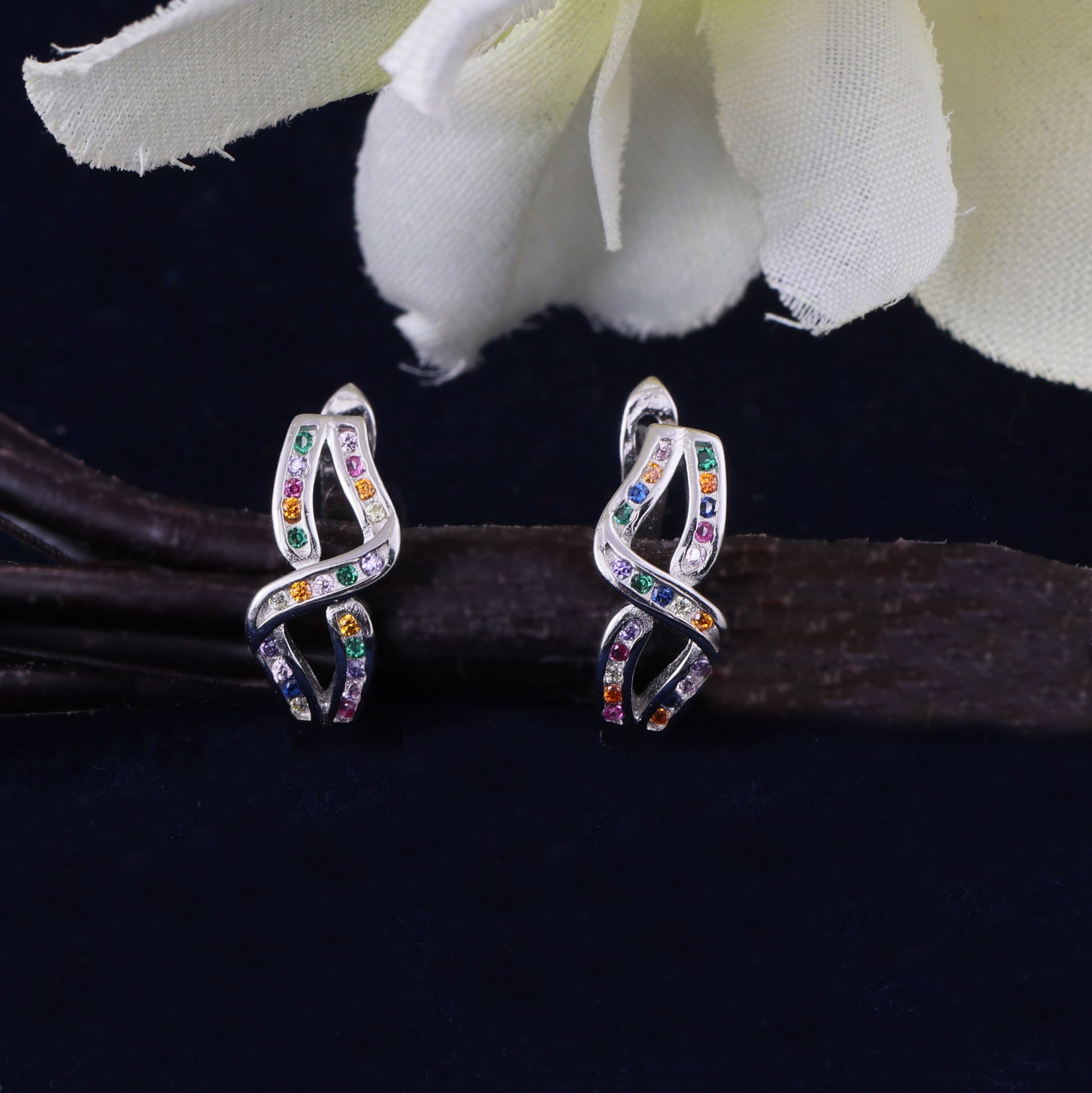 Infinity Loop Hoop Earrings with Multicolor Stones